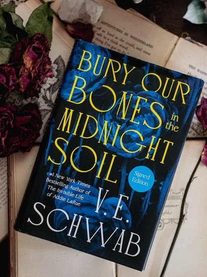 During the month of August, the Literary Coven will be reading V. E. Schwab’s Bury Her Bones in the Midnight Soil, an enchanting, sapphic novel about three women and a hunger that unites them across distant timelines.