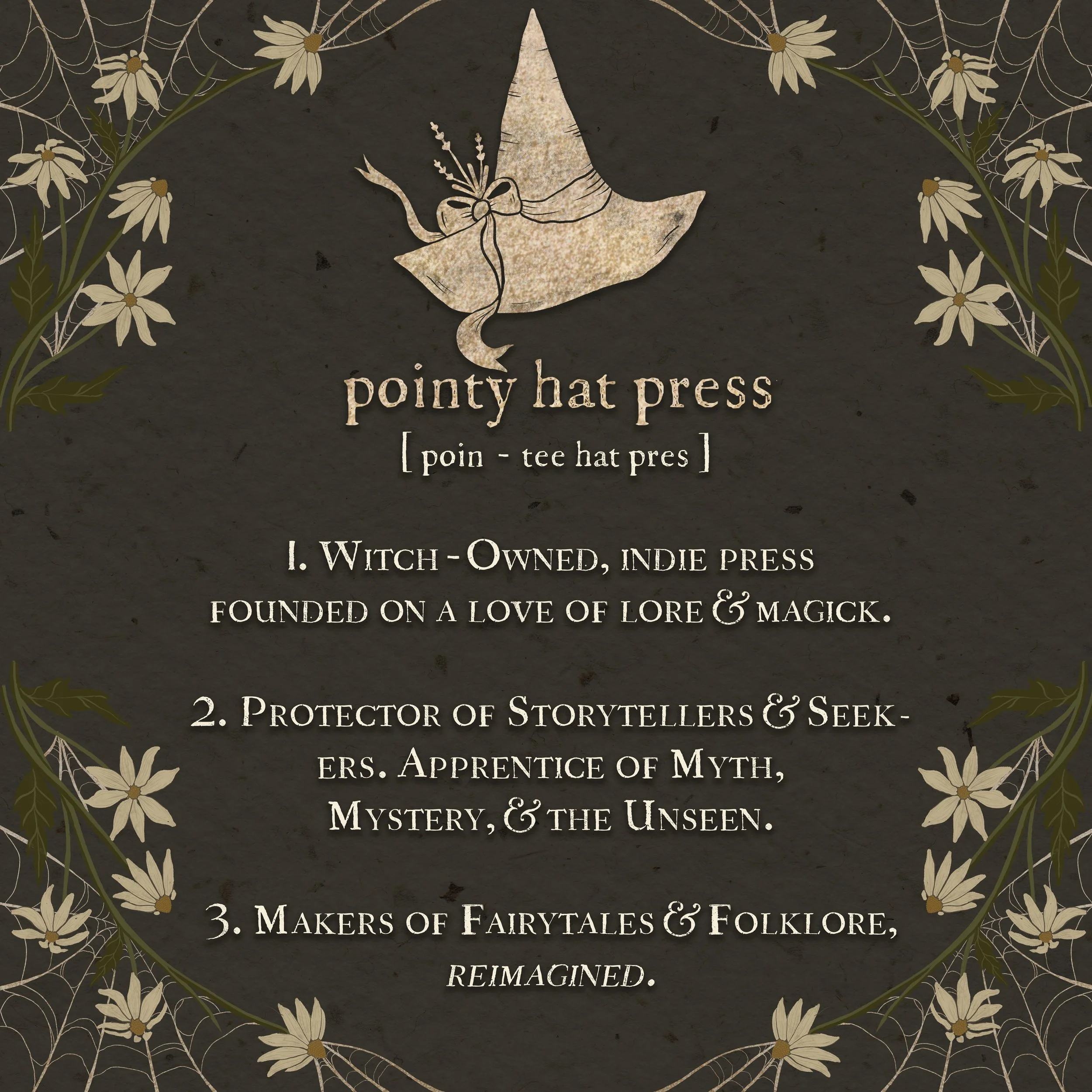 Pointy Hat Press's Spooky Spring contest runs from April 5th - June 1st, 2023. The Winner will be chosen by Pointy Hat Press founders, Kristin and Caitlyn, and announced at 12 pm EST on the Full Flower Moon, June 4th, 2023. This is in no way sponsored, endorsed, or associated with Instagram, so if you have questions, drop us a comment.